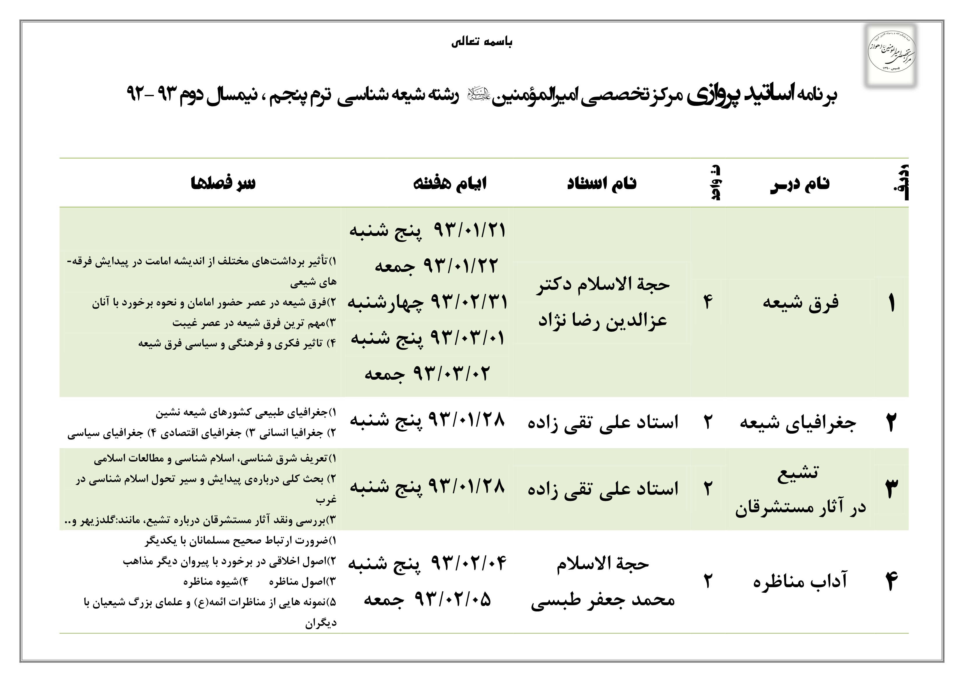 لیست نمرات درس آداب مناظره(ترم دوم) استاد طبسی